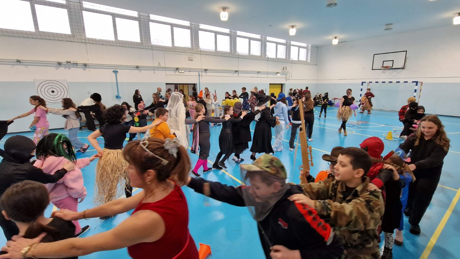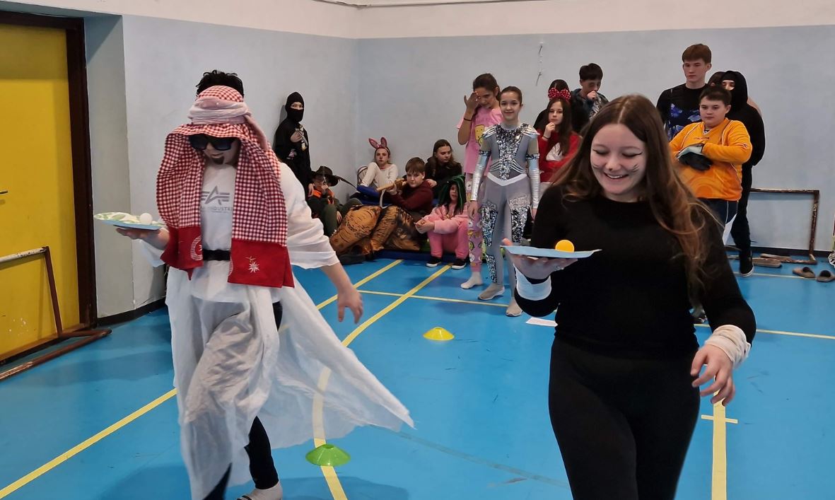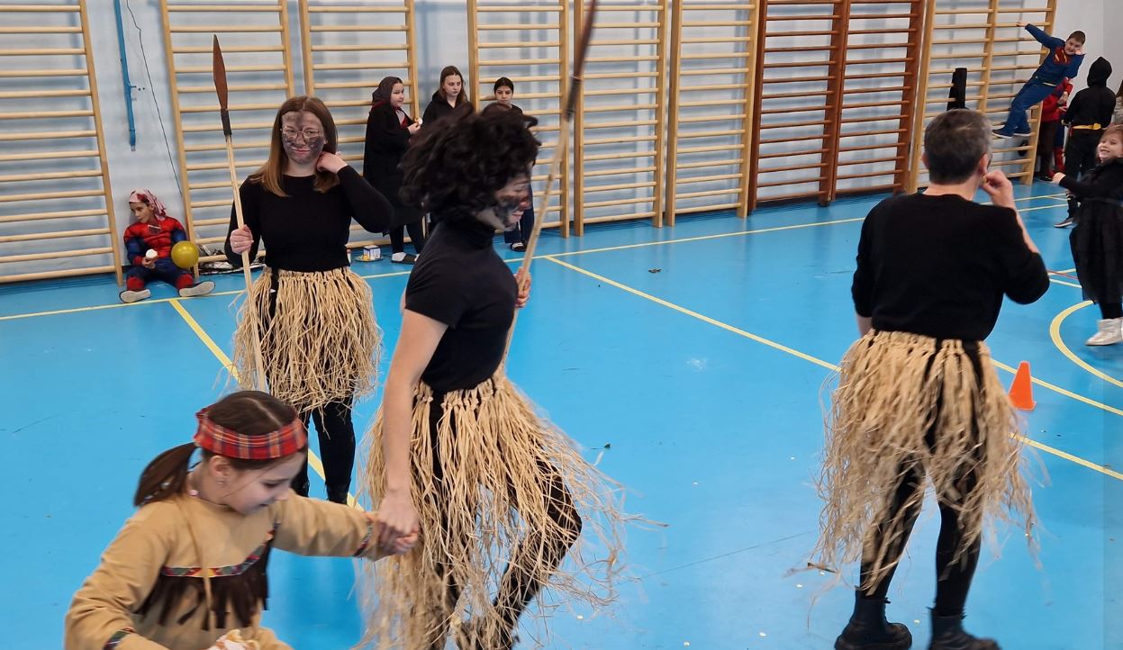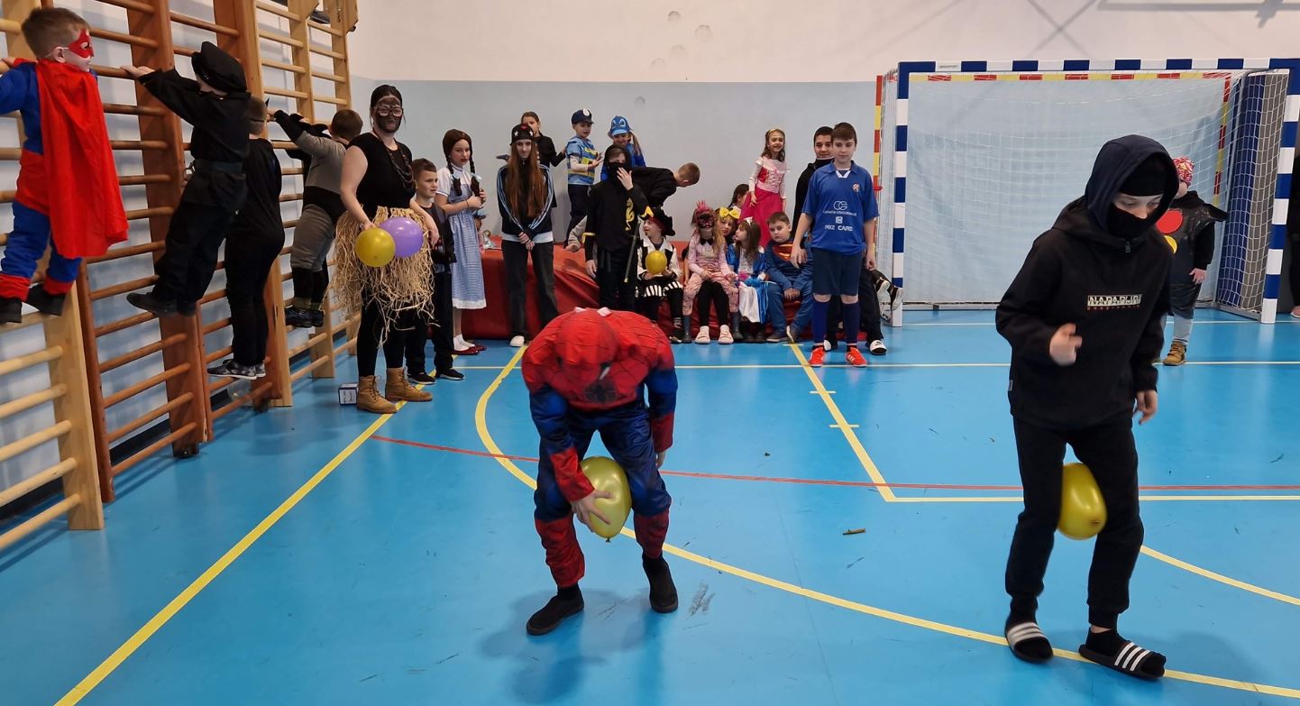 Maškare su i ove godine obilježene u sportskoj i veseloj atmosferi, naši učenici su se natjecali u raznim igrama: metloboj, ples boja, igre s balonima, „pokupi pa vladaj“ te nošenje loptica u žlici, pridružili su im se i vrtićanci.